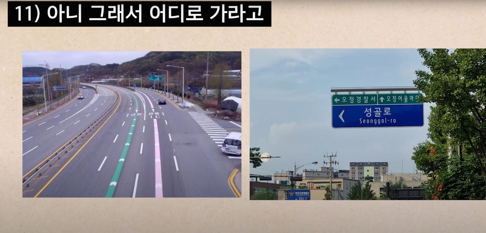 이럴 땐 바닥 색깔유도선이랑 표지판을
