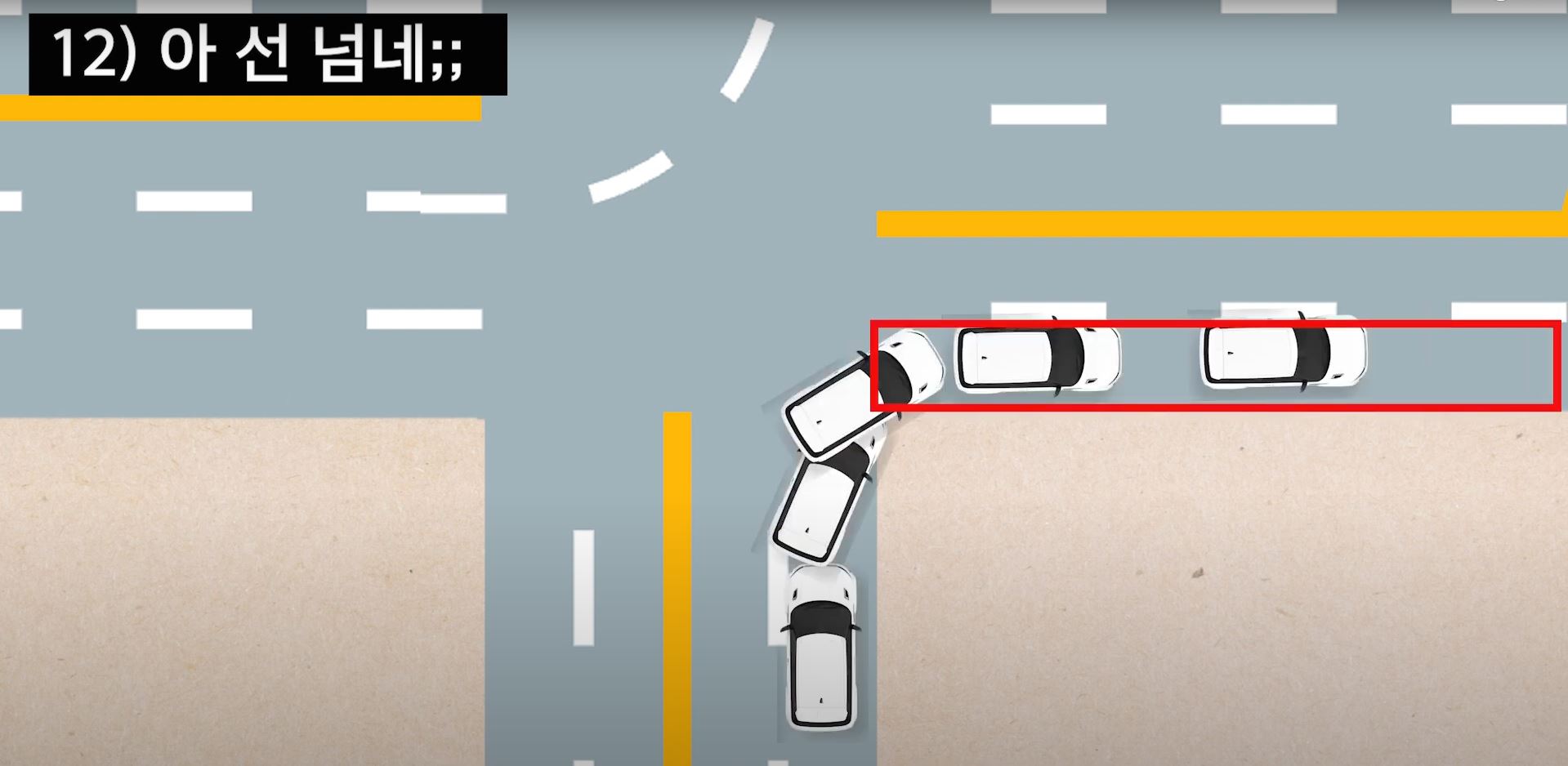 우회전을 하면 무조건 차선을 벗어나게 됩니다.