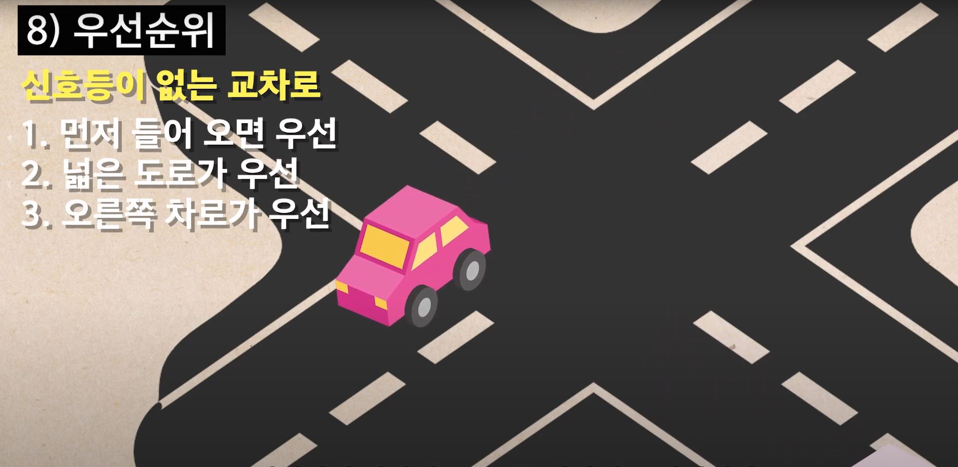 교통질서를 위해 도로에는 양보에도 순서가 있습니다.