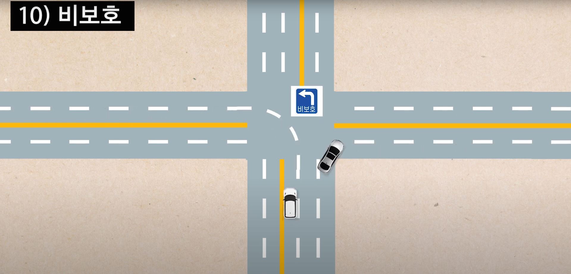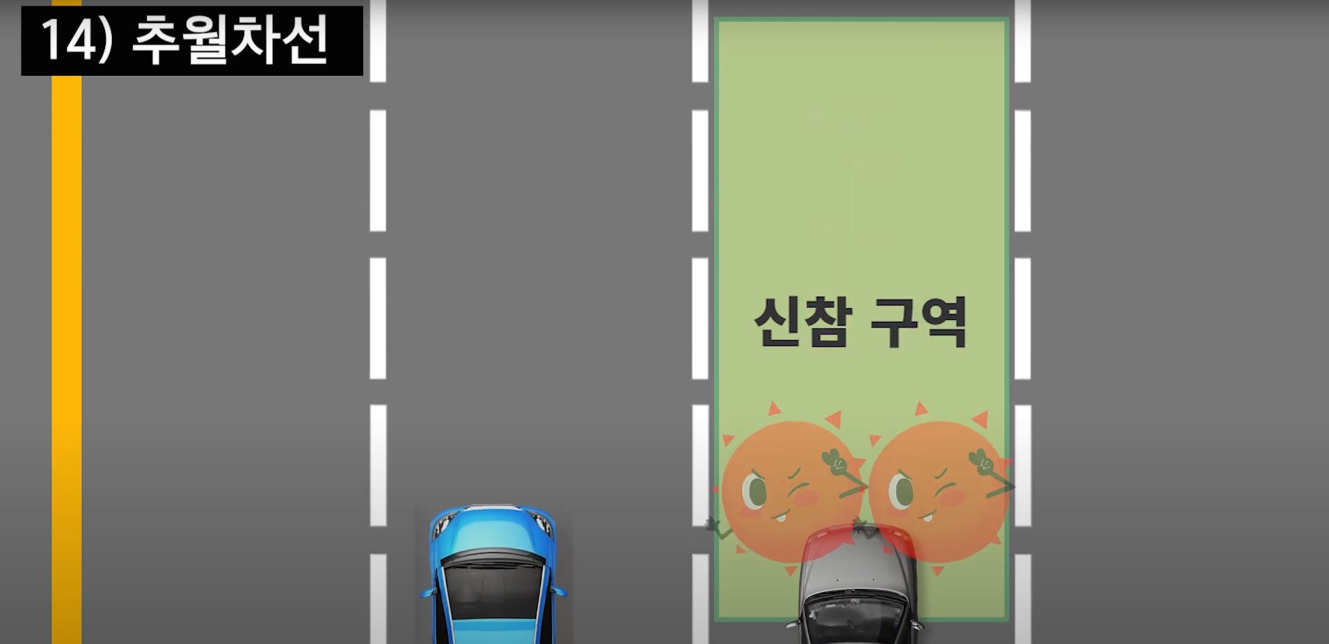 그리고 이 노란 빗금 구역에 들어가면 불법이니까 조심해주세요.