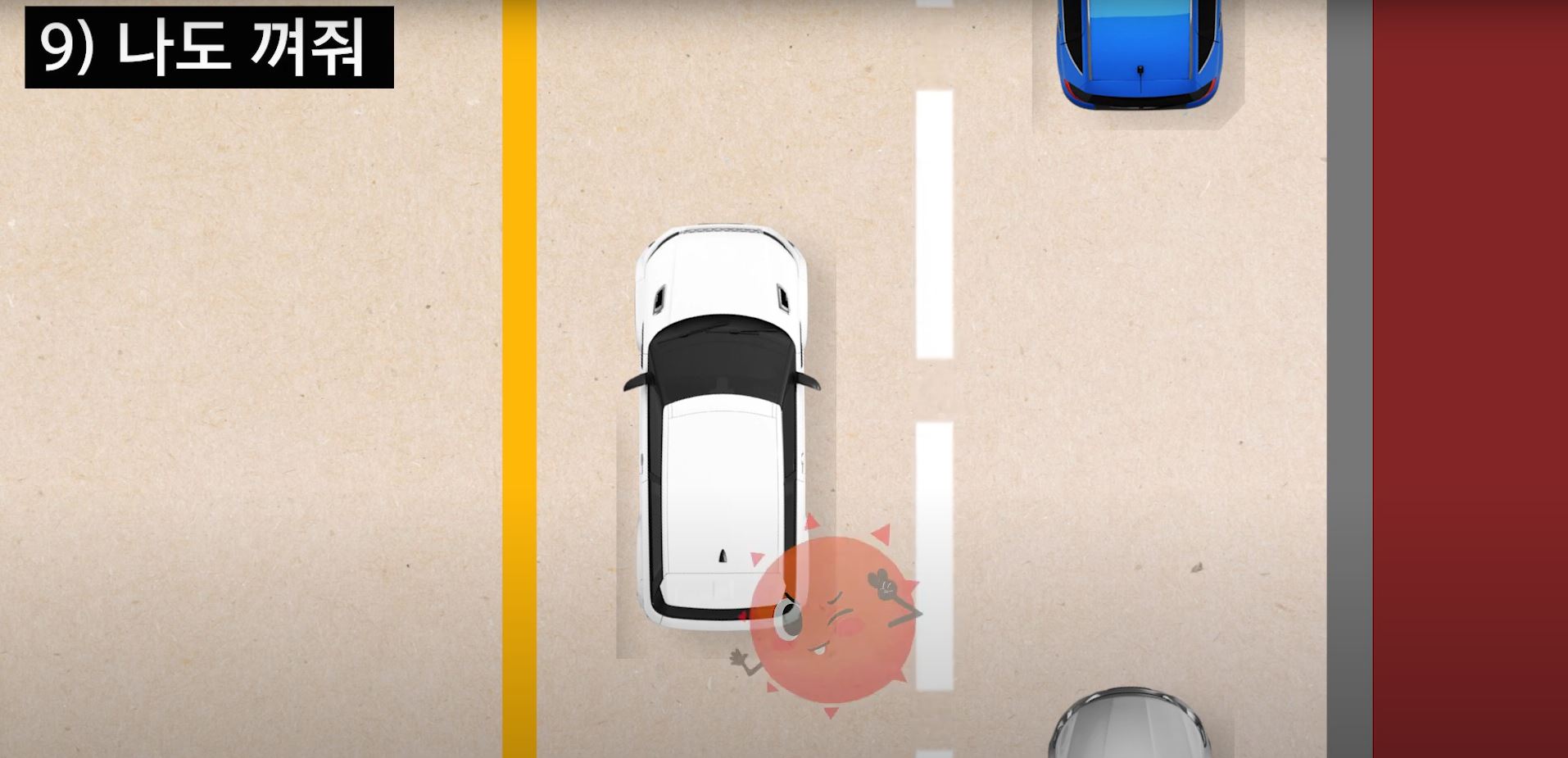 마음이 아프겠지만 핸들을 틀거나 급정차하실 경우