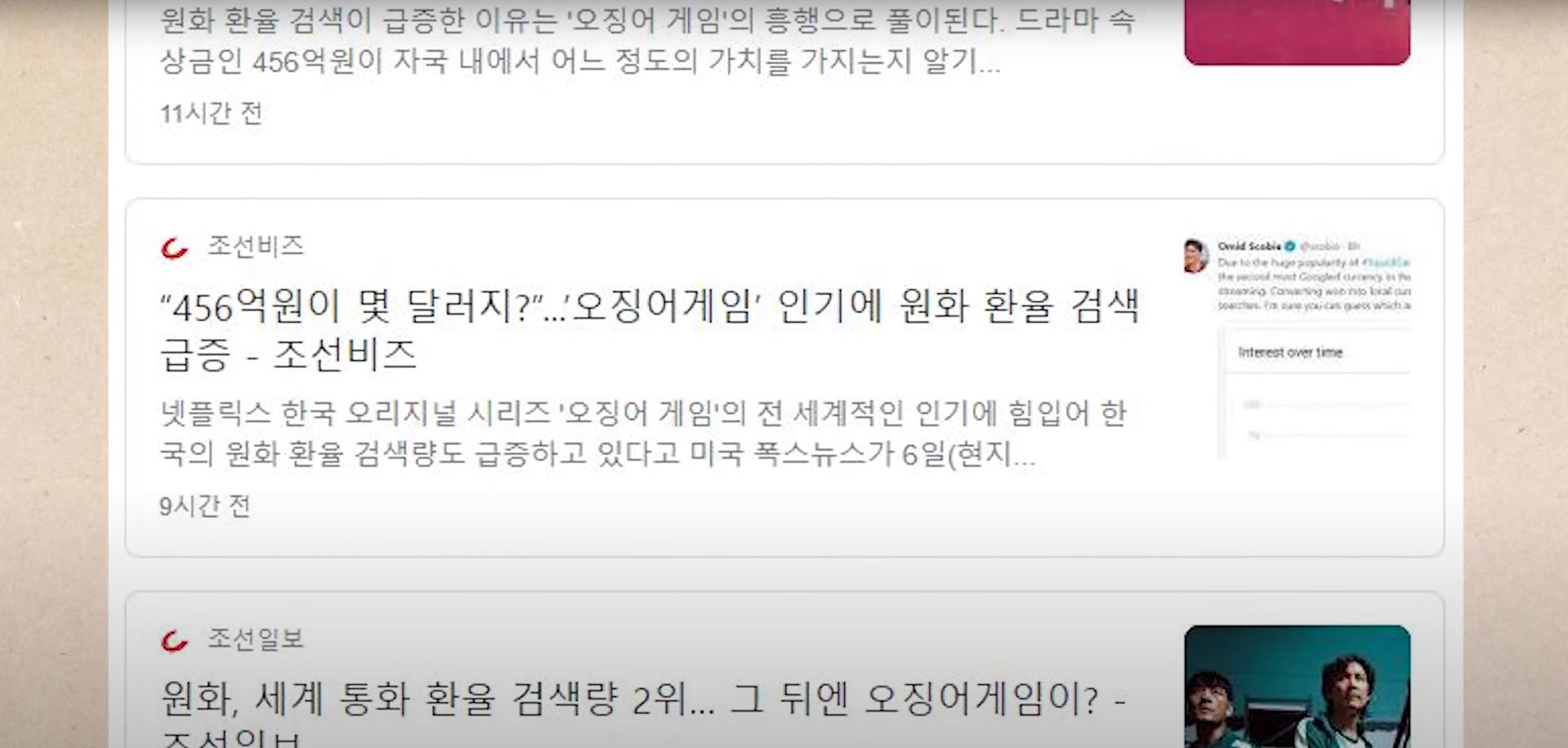넷플릭스 '오징어 게임'의 인기로 한국의 원화가
